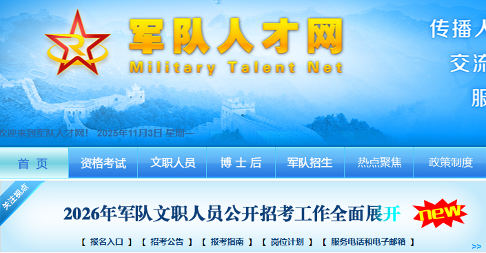 考生可于2025年11月3日8:00至9日18:00,登录军队人才网进行网上报名。