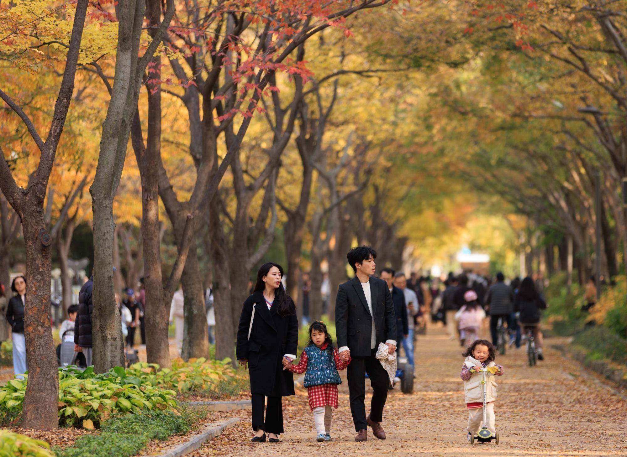 11月9日,人们在韩国首尔市首尔林公园内赏秋。新华社发(朴晋泽摄)《大韩医师协会会刊》今年6月刊载的一份研究报告说,韩国平均每天约有10名老人自杀身亡。这一比例在全球发达国家和地区中处于较高位置。