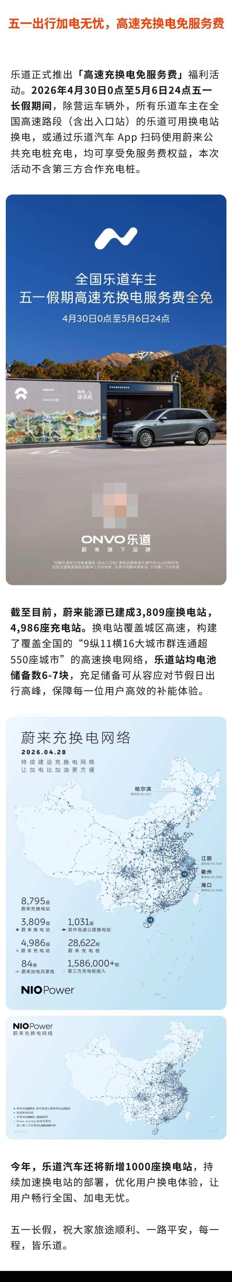 据了解,今年春节期间,乐道汽车也宣布其用户在全国高速公路换电站享换电免服务费。
