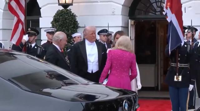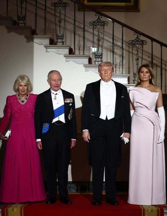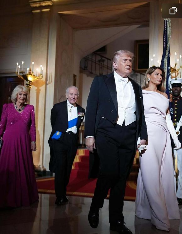 4月28日美国第一夫人梅拉尼娅陪伴特朗普参加欢迎查尔斯和卡米拉王后的宴会;让人没想到的是第一夫人梅拉尼娅穿淡粉礼裙温柔出圈,用极简高定诠释美式优雅,还扮嫩毫无违和感,让特朗普备有面儿!