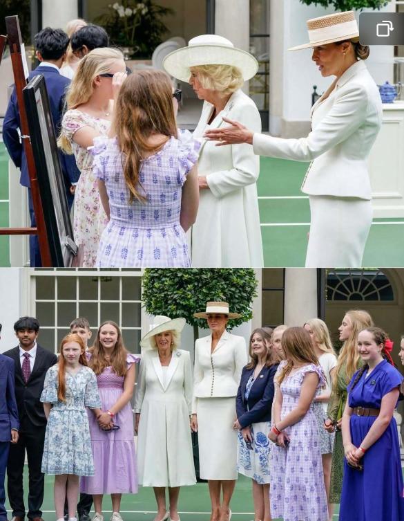 不管是出席宴会,还是出席活动,夫人选择的着装都是极简风,既兼顾了礼仪规范、个人风格与场合适配度,又将美式干练与英式优雅融合得恰到好处,梅拉尼娅这次接待卡米拉真的是用心了。